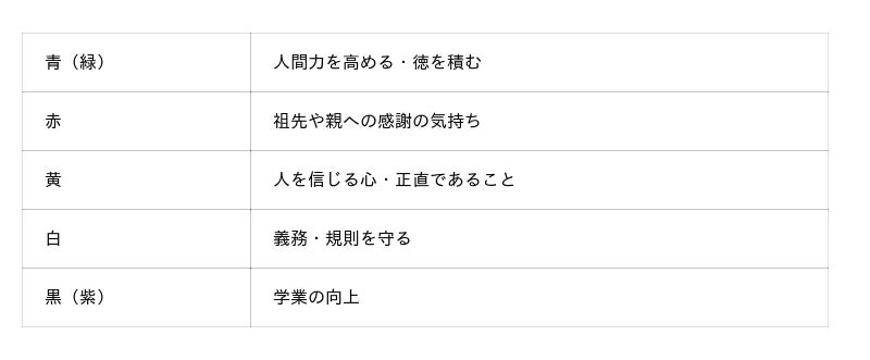 短冊の色は中国の陰陽五行説を由来とした「青・赤・黄・白・黒」を使うのが基本で、それぞれに意味があるといわれています。