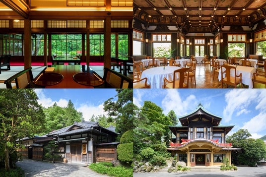 (左)旧御用邸 菊華荘 /(右)メインダイニングルーム・ザ・フジヤ