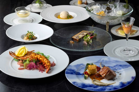 国登録有形文化財に指定される「メインダイニングルーム・ザ・フジヤ」、または皇室ゆかりの「旧御用邸 菊華荘」にて、厳選された旬の食材を使用し、伝統と革新が融合した美食をご堪能いただけます。