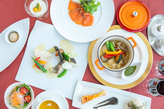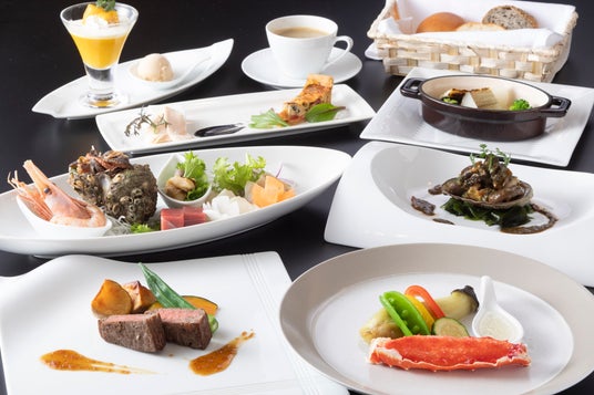 古くは御食国(みけつくに)と呼ばれ、地元の海産物を献上していた若狭の国。新鮮な魚介が一年を通して豊富に揃う食材の宝庫です。全面ガラス張りの開放的なレストランでは、若狭甘鯛、若狭ふぐ、ふくいサーモン、地元のジビエ(鹿・猪)、若狭牛など、福井・若狭の旬の食材を使った創作フレンチを、お箸で気軽に楽しめるスタイルでご提供いたします。