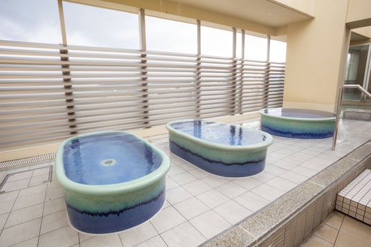 温浴エリアでは、雄大な海の恵みを感じながらゆったりとくつろげる大浴場をご用意。露天風呂には、旅の疲れを癒す信楽焼のつぼ湯・寝湯を備え、内湯には美容効果も期待できる炭酸泉を完備しています。