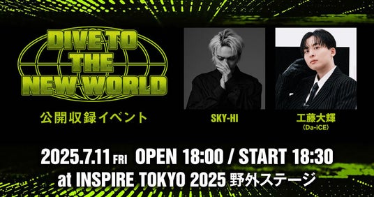 一般財団法人BOATRACE振興会(東京都港区六本木)は、BOATRACEの効果的なプロモーションを行うことを目的とし、7月10日(木)、11日(金)、12日(土)、13日(日)の4日間、代々木公園イベント広場等で開催される夏の大型イベント「J-WAVE presents INSPIRE TOKYO 2025 ~Best Music & Market~supported by Expedia」(以下、INSPIRE TOKYO 2025)に協賛し、代々木公園野外ステージにて、当会がスポンサードを行うSKY-HIがナビゲートするラジオ番組『DIVE TO THE NEW WORLD』(毎週土曜23時~23時54分放送)の公開収録を実施します。ゲストは、Da-iCE 工藤大輝が出演!