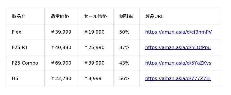 【主なセール対象製品】