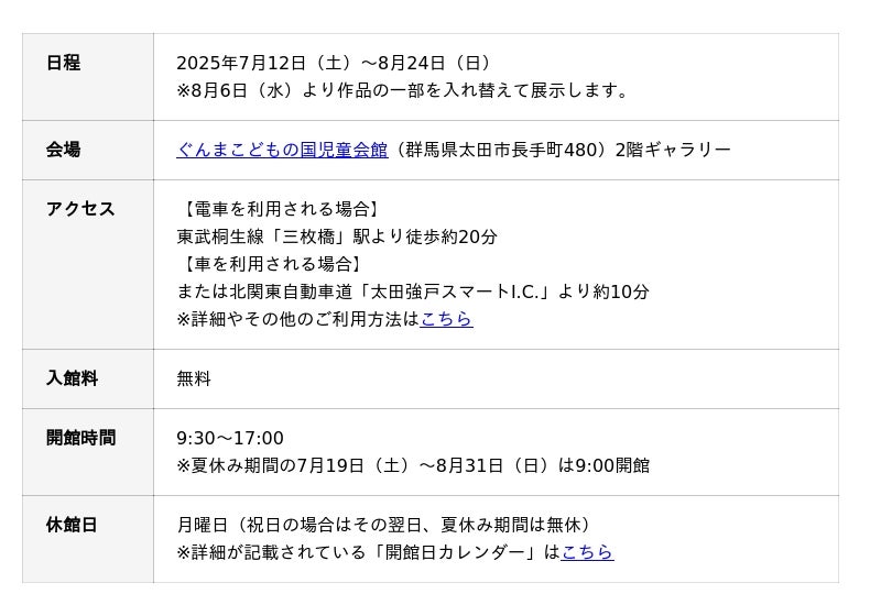 今回、第22回コンテストの優秀作品40点を、2025年7月12日(土)~8月24日(日)まで、「ぐんまこどもの国児童会館」にて展示します。