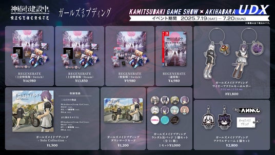 「KAMITSUBAKI GAME SHOW AKIHABARA UDX」イベント参加ポイント・税込5,000円以上ご購入 …1点・「神椿市建設中。REGENERATE」のいずれかのパッケージをご購入 …1点※7月20日(日)のグッズ販売は15:00までとなります。