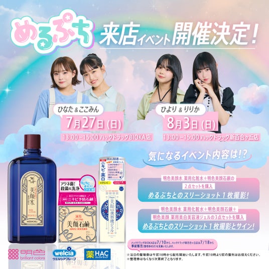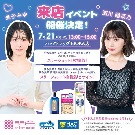 ウエルシア薬局株式会社(本社:東京都千代田区、代表取締役社長:田中純一、以下、ウエルシア薬局)は、ハックドラッグBIOKA店、ハックドラッグ新百合ヶ丘店にて、Z世代に人気のインフルエンサー「金子みゆさん」「瀬川陽菜乃さん」「めるぷちさん」が来店するイベントを開催します。