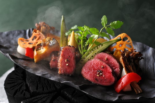 外は香ばしく中はしっとりと焼き上げた和牛や鹿肉、アワビを季節の野菜とともに味わえる一皿です。野菜は酸味の効いたピクルス、食感が楽しめるフリットなど、その時期の食材が持つ味わいや風味といった素材の魅力を五感で楽しめる調理法で仕上げています。