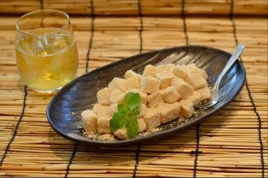 そのままでもおいしい「ミルクず餅」ですが、今回は北海道産の大豆から作られたきな粉をまぶし、さらに北海道の魅力が伝わるアレンジを施してご提供いたします。