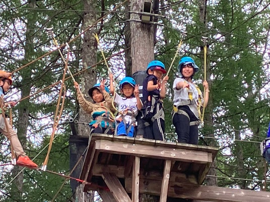 水のアクティビティの他にも、ハーネスを装着して楽しむアスレチック体験や白馬スキー場のジャンプ台見学など、お子様のチャレンジ精神をはぐくむ体験が盛りだくさんのサマーキャンプです。