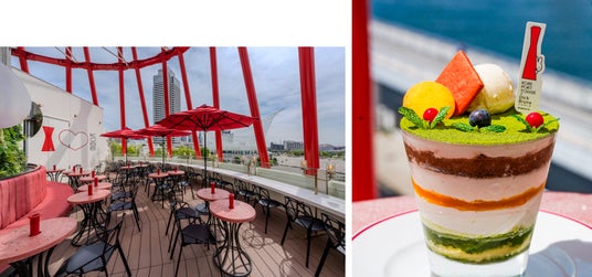 店内はどの席からも神戸港をはじめ屋外を眺められ、リニューアルで誕生したオープンテラスなどで心地よく過ごせるレストラン・カフェ&バー。ディック・ブルーナの世界をイメージしながら、神戸の海と山を表現した限定スイーツ2種を提供します。