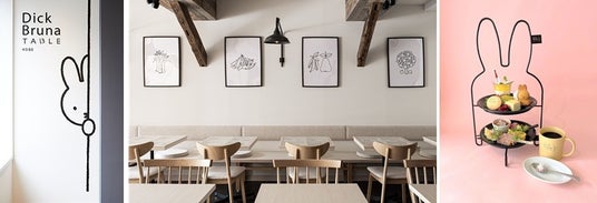 ディック・ブルーナ テーブルは、「ディック・ブルーナのイラストと共にワインと食事と会話が楽しめるお店」として誕生しました。ディック・ブルーナの名を冠し本格的にお酒を提供する世界初のワインバル&カフェレストランです。2020年7月に神戸店、2021年3月に横浜店がオープンしました。常設店内の飲食スペースはディック・ブルーナの絵本がディスプレイされたカフェスペースのほか、ブラック・ベアの作品に浸れるシックな空間もあり、ディック・ブルーナの多彩な世界へ誘います。