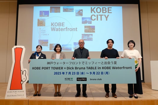 フェリシモは、2025年7月2日(水)、Stage Felissimoホール(神戸市・中央区)にて「『KOBE PORT TOWER × Dick Bruna TABLE in KOBE Waterfront』イベント記者発表会」を開催しました。本イベントはフェリシモが屋上デッキや展望フロア、低層1階のエントランスやチケット売り場を運営する「神戸ポートタワー」と、ディック・ブルーナのイラストと共にワインと食事と会話が楽しめるワインバル&カフェレストラン「Dick Bruna TABLE[ディック・ブルーナ テーブル]」を中心に、2025年7月23日(水)から9月22日(月)まで開催するサマーイベントで、大丸神戸店で開催されフェリシモが協賛する「誕生70周年記念 ミッフィー展」とともに開始いたします。神戸港を囲む15の施設とスポット(商業施設、ホテル、水族館、アリーナ、観光船など)で展開します。開幕まで約1か月に迫り、本日開催した記者発表では各スポットでの多彩な体験内容の詳細を発表しました。