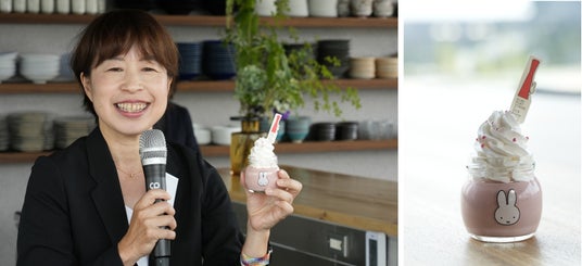 さらに第2部の試食会ではStage Felissimo2階にあるレストランにて、神戸ポートタワー展望フロア3Fで本イベント用に提供する「ミッフィーのプリントボトルに入ったいちごプリンとカラフルソーダ」(写真上左)やDick Bruna TABLE 神戸で本イベント用に提供する「ミッフィーのミッフィーユ」(写真上中央)、「アフタヌーンティーセット」(写真上右)のメニューの紹介・撮影会や、「ポートタワー いちごプリン ミッフィー」(写真下右)の試食会が行われました。※画像はイメージを含むため、変更になる場合があります。価格はすべて税込みです。