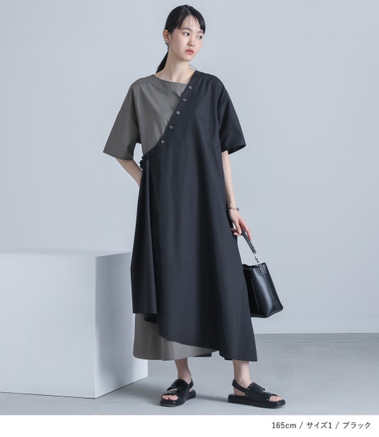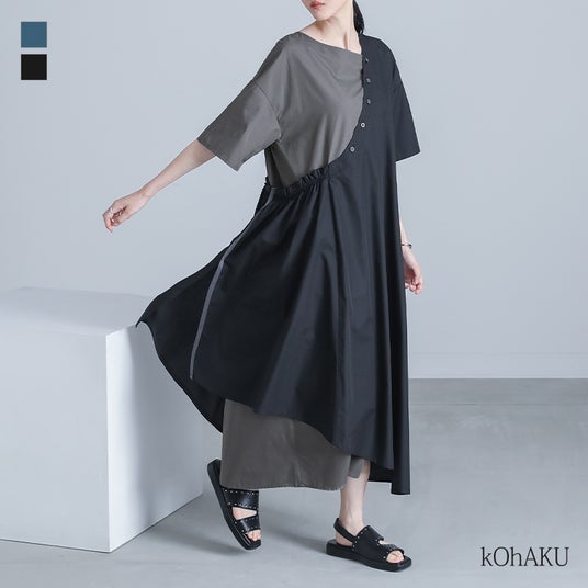 kOhAKU配色アシンメトリーワンピース/12do01z