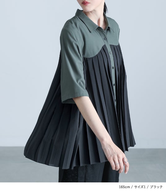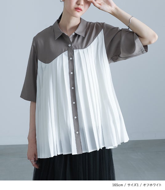 kOhAKUカーブ切替プリーツシャツ/12to049