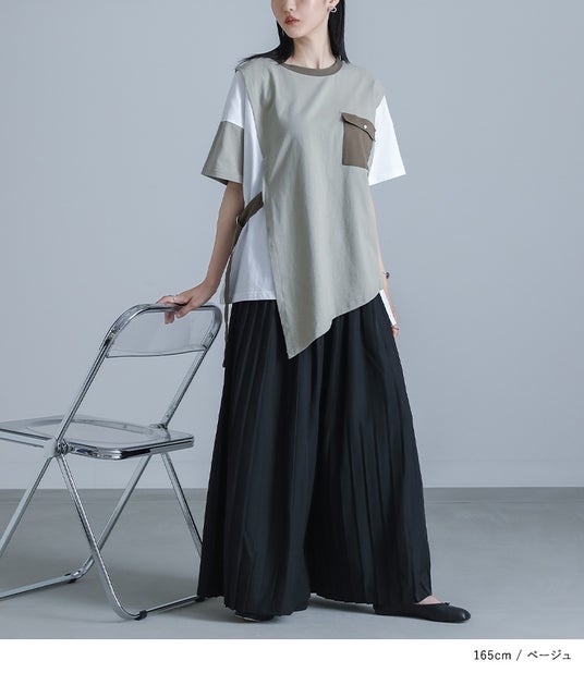 前後の裾をアシンメトリーにすることで、どこかモードな雰囲気に。