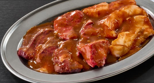 赤く輝く見た目から"炎の肉"とも呼ばれ、脂の甘みとさっぱりした後味が魅力。