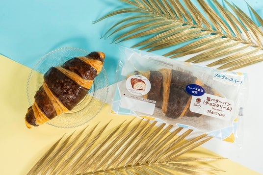 【内容】デニッシュ生地とココアで色をつけたフランス生地を重ねたパンに、ロレーヌ岩塩入りの発酵バター入りマーガリンを絞って焼き上げた塩バターパンに、チョコクリームをサンドしました。