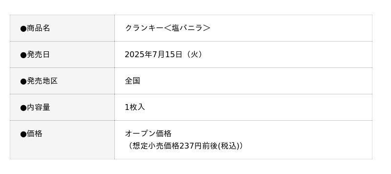 株式会社ロッテ(東京都新宿区、代表取締役社長執行役員:中島英樹、以下ロッテ)は2025年7月15日(火)にサクサク食感でおなじみの「クランキー」ブランドより、「クランキー<塩バニラ>」を発売いたします。