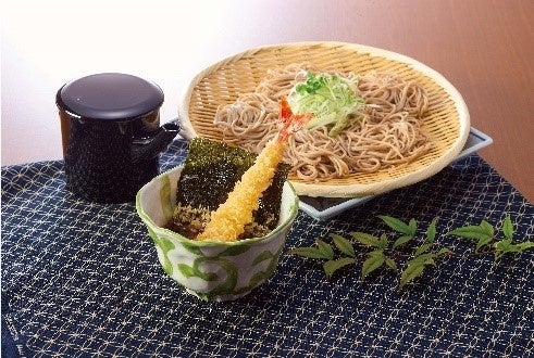 サガミ自慢の大海老天ぷらと、店内製麺のそばを、ごま油香るアツアツなつゆにつけて召し上がりください。