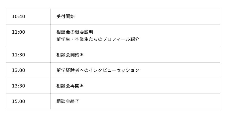 *混雑状況によっては、皆様が順番に留学生とお話頂ける様、予約表のご記入をお願いする場合がございます。