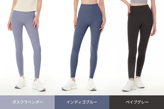 当レギンスの最大の強みは「通気性」と「伸縮性」を追求した独自開発の高機能素材。汗をかいても素早く熱を放出し、さらりとした状態がキープされ、まるで風を着たように爽快な着心地が続きます。また多くの女性が気になるYラインの縫い目をなくした