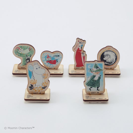 展示作品「ヴィクトリアン・スクラップ」で描かれているムーミンとその仲間たちがスタンプに。木のやさしい風合いも魅力です。押しても飾ってもお楽しみいただけます。