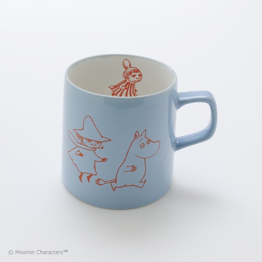 キャラクタースケッチや塗り絵に登場する一場面がマグカップに。背面には展覧会の英語ロゴをあしらっています。