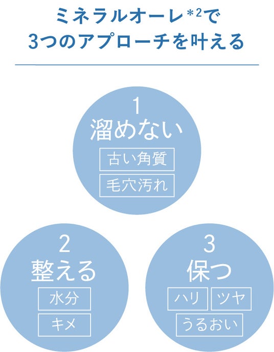 その1. 独自成分ミネラルオーレ*²配合&マイナス電位を保持