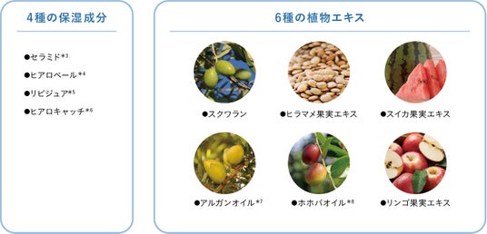 ³ フィトステリルグルコシド/グルコシルセラミド、グルコシルセラミド ⁴ ヒアルロン酸ヒドロキシプロピルトリモニウム ⁵ ポリクオタニウム-51 ⁶ カルボキシメチルヒアルロン酸Na ⁷ アルガニアスピノサ核油 ⁸ ホホバ種子油