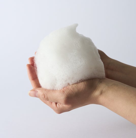 キメ細かな弾力泡が摩擦レスに肌を優しく包み込み、汚れを吸着して落とします。