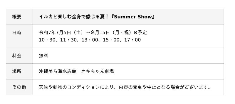 沖縄美ら海水族館(所在地:沖縄県国頭郡本部町 館長:佐藤 圭一)では、7月5日(土)より「オキちゃん劇場」におきまして、『Summer Show』を開催いたします。