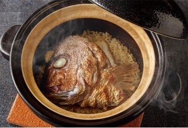 名物 真鯛土鍋御飯 2,618円 こだわりの出汁と真鯛から取ったうまみを合わせ炊き上げた、香ばしい風味豊かな自慢の土鍋御飯