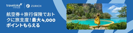チューリッヒ保険会社(東京本社:東京都中野区、日本における代表者および最高経営責任者:西浦 正親、以下「チューリッヒ」)とTraveloka Japan株式会社(本社:東京都港区、日本における代表取締役:クリスチャン・アディ・ヌグロホ、以下「トラベロカ」)は、2025年6月30日より、トラベロカが運営する旅行予約プラットフォーム(https://www.traveloka.com/ja-jp)で、航空券とチューリッヒが提供する旅行傷害保険を同時に購入されたお客さまを対象とする共同キャンペーンを開始しました。