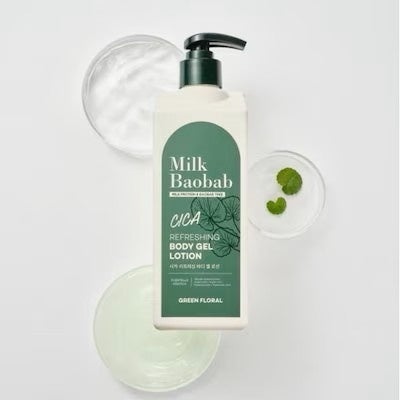ボディージェルローション(ショップ名:Milk Baobab 公式ショップ)5種のツボクサ由来成分を配合。さっぱり&しっとりの使い心地のジェルで、上品なグリーンフローラルの香り。