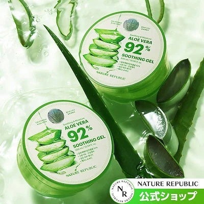 アロエ スージングジェル(ショップ名:NATURE REPUBLIC 公式)アロエベラ葉エキス92%配合のぷるぷるジェル。夏の外的刺激を受けた肌をひんやりと包み、べたつかずにうるおいを与える。