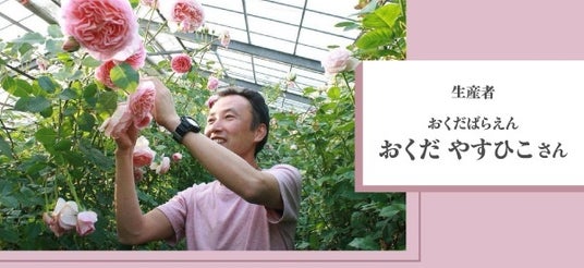 京都市伏見区・深草にある「おくだばらえん」の二代目。アメリカでバラの栽培技術を学んだのち、農薬に頼らずバラ本来の美しさを引き出す栽培法へと転換。ハーブの抽出液や木酢液・竹酢液など自然由来の素材を使い、生命力あふれる美しいバラを育てている。その栽培技術は高く評価され、2021年には全国2,000人のバラ栽培者の中から選出される「5人のバラ職人」に選ばれる。栽培されたバラは香りや味わいにも優れ、食用やスイーツ素材としても注目されている。自然への敬意と人への想いを込め、一本一本に愛情を注ぎ育てられたバラは、見る人・触れる人の心を豊かにする力を持っている。