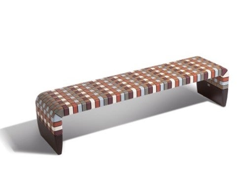 ブランドの歴史と職人技へのオマージュとして発表された「 Brera 90th Anniversary Edition」は、イタリアの建築家・デザイナーであるグリエルモ・ウルリッヒによる復刻モデルです。座面には、温かみのある色合いからクールなトーンまで、さまざまなレザーが繊細に織り込まれ、モダンで触感的な幾何学模様を描き出しています。ディテールへのこだわりが、時を超えてなお新鮮な美しさを湛えています。ベンチの内側には、本モデルが90周年記念の限定仕様であることを示すメタルプレートが取り付けられています。