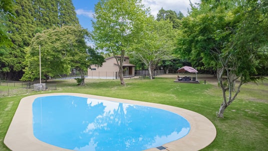 約9,000平方メートル に広がるプライベートドッグランやプールでは、大型犬や複数頭でものびのびと遊べる贅沢な広さを確保。四季折々の自然に囲まれながら、人目を気にせず愛犬と過ごす、ただ一つの時間。