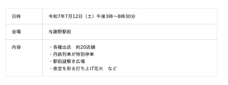 与謝野駅の開業100周年を祝して、夏のヨサノガーデンフェスを開催します。