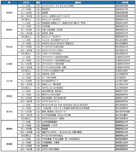 2024年度の1年間に顕著な実績を収めた宿泊施設を表彰「じゃらんアワード2024」中国・四国ブロック発表