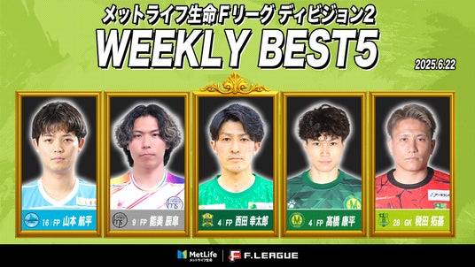 6月22日(日)に実施したメットライフ生命Fリーグ2025-26 ディビジョン2 第2節におけるベスト5をお知らせいたします。