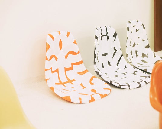 本展覧会では、エリック・ヘイズの新作ドローイング 10点に加え、インテリアショップ「Mid-Century MODERN(ミッドセンチュリーモダン)」が長年にわたり収集したヴィンテージの「Eames Shell Chair(イームズシェルチェア)」やテーブル、信楽焼の大壷にペインティングを施した作品のほか、職人の手で制作されたタフティングラグなどを展示・販売いたします。ミッドセンチュリーの名作家具とアートが融合した世界観をぜひご体感ください。