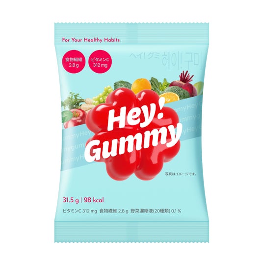 おやつ感覚で楽しめる「ヘイ! グミ」は、味が美味しいのはもちろん、日々の栄養バランスにも