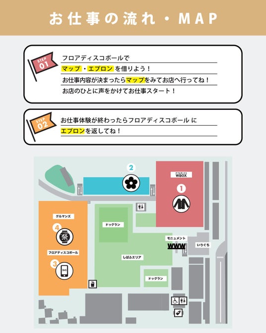 ▼ 当日の流れをチェック!おしごと体験のステップガイド