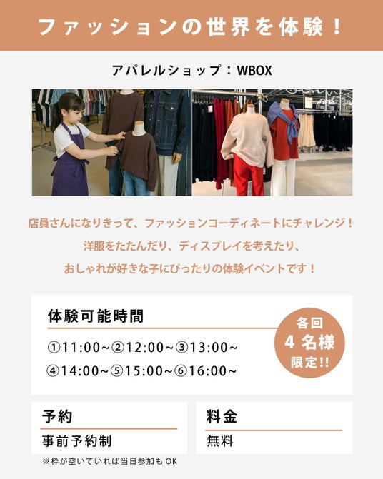 店員になりきって、ディスプレイやコーディネートに挑戦!(無料/各回4名限定)