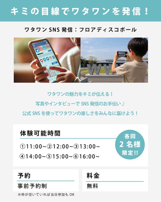 インタビューや写真撮影でワタワンの楽しさをSNSで発信!公式SNSにあなたの撮影が載るかも!?(無料/各回2名限定)