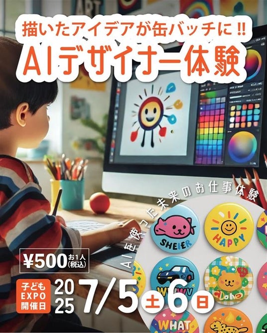 自分のアイデアが缶バッジに!未来のクリエイターはキミかも?子どもも大人も楽しめる"未来のしごと体験"!