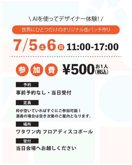"やってみたい"がきっと見つかる!ワクワクのお仕事体験がいっぱい!AIデザイナー体験(事前予約なし・当日受付)