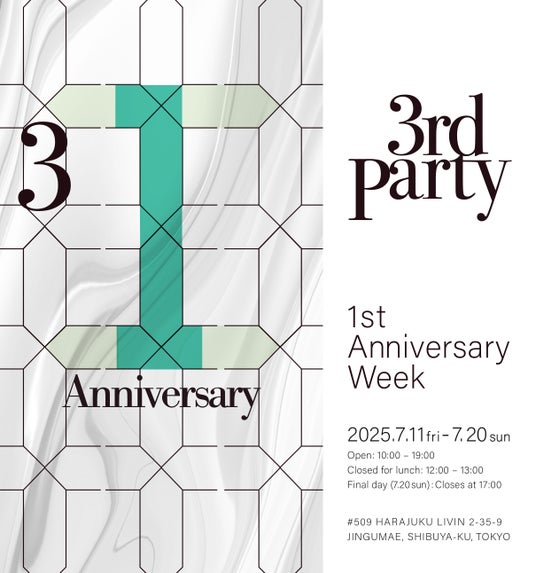 東京・原宿にあるインテリアアイテムのレンタルサービス&オンラインストア「3rd party」は、2025年7月にオープン1周年を迎えました。ささやかな節目として、2025年7月11日~20日の期間を「1st Anniversary Week」とし、美術家・水野文菜さんによる個展「COLORS」を開催いたします。